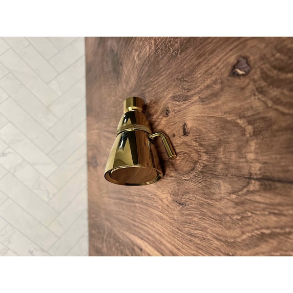 Large POLISHED BRASS Shower Head Solid Forged Brass 2.5 GPM