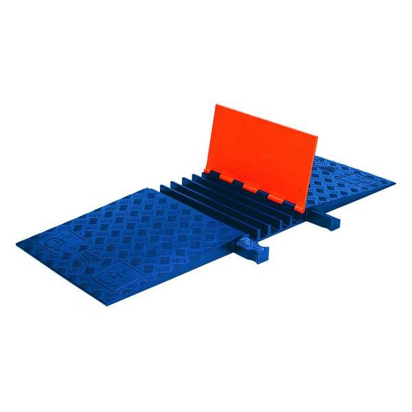 ADA Cable Protector, Number of Channels 5, Cable Feed Style Lay In, Connection Style Dog Bone, Channel Height 1 3/8 in, Channel Width 1 3/8 in, Load Capacity 21,000 lb/Axle, Material Polyurethane, Style Hinged, Color Blue/Orange, For Use With Electrical Cables, Hose Lines, Max. Cable Dia. 1 13/40 in, Height 1 7/8 in, Length 20 in, Width 50 in, Standards ADA Compliant, DDA Compliant, ADA Compliant Yes, Texture Serrated