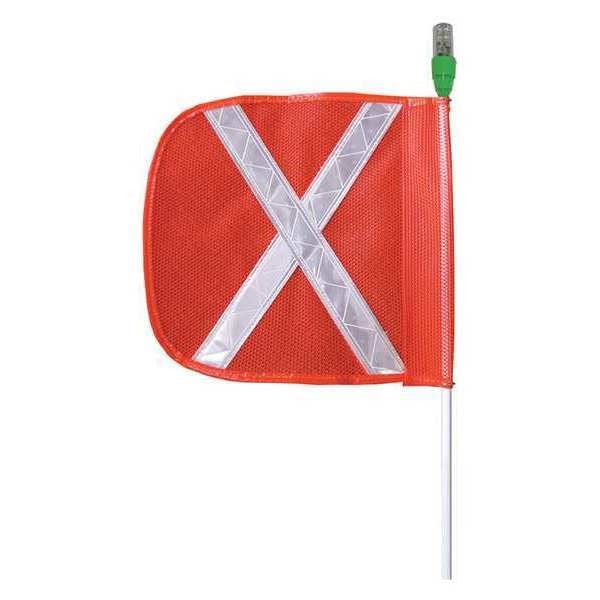 Warning Whip with Reflective X Flag, Reflective X Yes, Light Sold Separately, Overall Height 5 ft, Flag Height 11 in, Flag Width 12 in, Pole Whip Included Yes, Base Type Hex Base, Flag Color Orange, Flag Material Nylon Mesh, Graphic Color White, Mount Type Included Yes