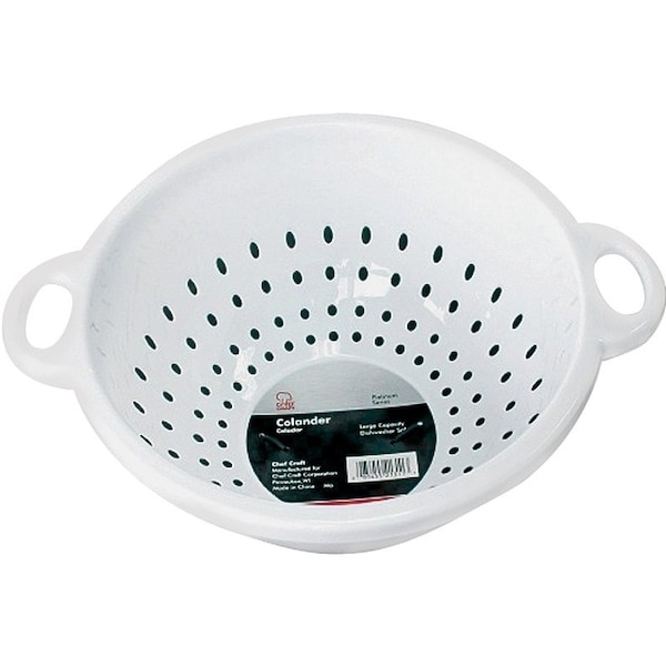 This white plastic colander is ideal for cleaning vegetables and for draining pastas. Whether you are carrying them in all the way from the garden or quickly making dinner from a box, its sturdy lightweight construction is perfect for the task.