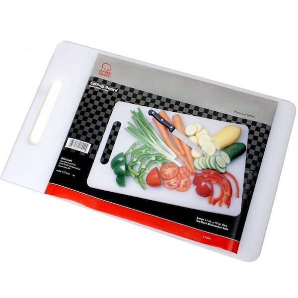 Cutting Board, 17-1/2 in L, 11 in W, Plastic, White