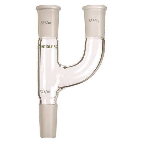 Adapter, Lower Ground Mouth Size 14/20, Upper Ground Mouth Size 14/20, Overall Length 117 mm, USP Specification Not Applicable, Product Type Claisen Adapter, Type Claisen Adapter, Material Glass, Color Clear, Autoclavable No, Features All Three Joints are the Same Size, Outer Standard Taper Joints on Both Top Arms and Lower Inner Joint, Standards Not Applicable
