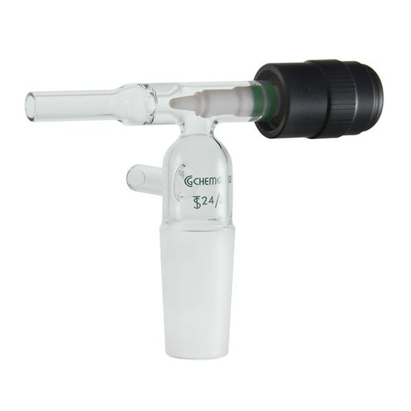 Adapter, Lower Ground Mouth Size 24/40, Upper Ground Mouth Size 24/40, Overall Length 80 mm, USP Specification Not Applicable, Product Type Adapter, Type Adapter, Material Glass/PTFE/Acetal, Color Black/Clear, Autoclavable No, Features Adapter has a 0 to 4 mm Metering Plug, Flow Control Adapter for Use with CG-1188 and CG-1189 Chromatography Columns Along with CG-1190 Reservoirs, Standards Not Applicable