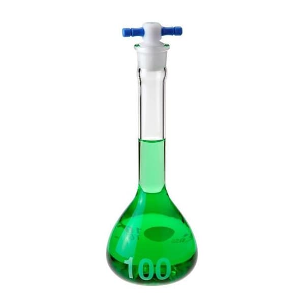 Volumetric Flask, Capacity - Metric 1 L, Capacity - English 33.81 fl oz, Flask Type Volumetric, Overall Height - Metric 350 mm, USP Specification Type I, Tolerance +/-0.30 mL, Includes Closure Yes, Closure Type Stopper, Neck Style Straight, Closure Material PTFE, Compatible with Stopper Size 22, Body Material Borosilicate Glass, Sterile/Non-Sterile Non-Sterile, Autoclavable Yes, Body Color Clear, Graduated No, Graduation Increments - Metric Not Applicable, Mouth Size Wide, Glassware Class A