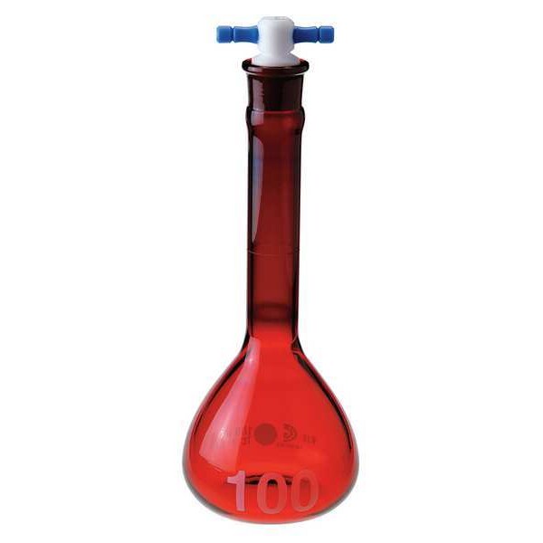 Volumetric Flask, Capacity - Metric 10 mL, Capacity - English 0.34 fl oz, Flask Type Volumetric, Overall Height - Metric 101 mm, USP Specification Type I, Tolerance +/-0.08 mL, Includes Closure Yes, Closure Type Stopper, Neck Style Straight, Closure Material PTFE, Compatible with Stopper Size 13, Sterile/Non-Sterile Non-Sterile, Autoclavable Yes, Body Color Red, Graduated No, Graduation Increments - Metric Not Applicable, Mouth Size Wide, Glassware Class A, ASTM Specification E288