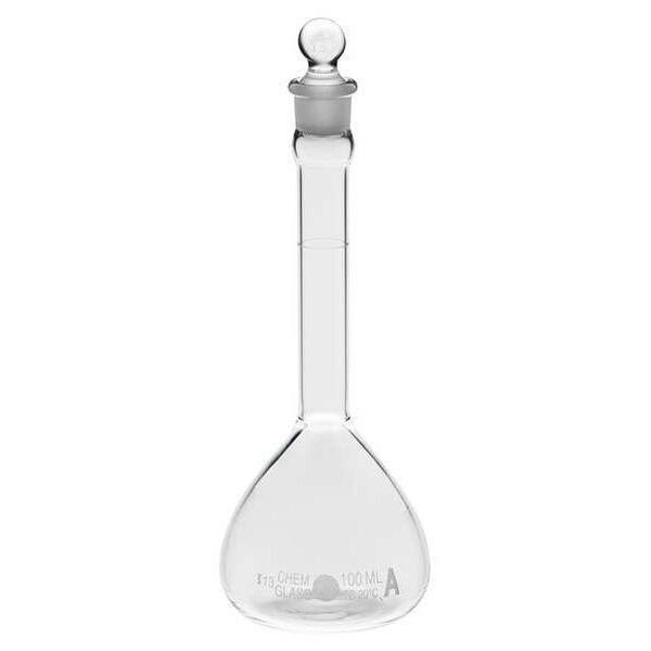 Volumetric Flask, Capacity - Metric 50 mL, Capacity - English 1.69 fl oz, Flask Type Volumetric, Overall Height - Metric 145 mm, USP Specification Type I, Tolerance 0.05 mL, Includes Closure Yes, Closure Type Stopper, Neck Style Straight, Closure Material Glass, Compatible with Stopper Size 9, Body Material Borosilicate Glass, Sterile/Non-Sterile Non-Sterile, Autoclavable Yes, Body Color Clear, Graduated No, Graduation Increments - Metric Not Applicable, Glassware Class A