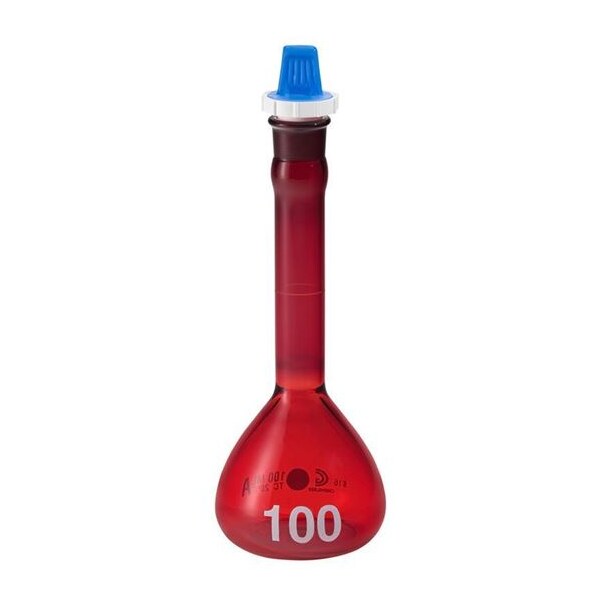 Volumetric Flask, Capacity - Metric 50 mL, Capacity - English 1.69 fl oz, Flask Type Volumetric, Overall Height - Metric 150 mm, USP Specification Type I, Tolerance 0.08 mL, Includes Closure Yes, Closure Type Stopper, Neck Style Straight, Closure Material Polyethylene, Compatible with Stopper Size 13, Sterile/Non-Sterile Non-Sterile, Autoclavable Yes, Body Color Red, Graduated No, Graduation Increments - Metric Not Applicable, Mouth Size Wide, Glassware Class A, ASTM Specification E288