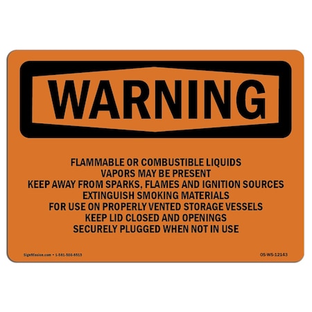 OSHA Warning Sign, 7" H, 10" W, Rigid Plastic, Flammable Or Combustible Liquids Vapors, Landscape
