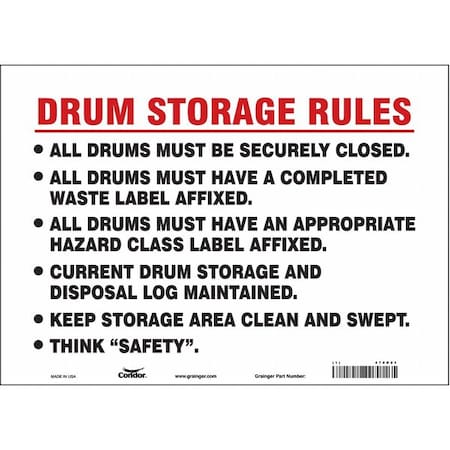 Safety Sign, 10 in Height, 14 in Width, Fiberglass, Horizontal Rectangle, English, 471M19