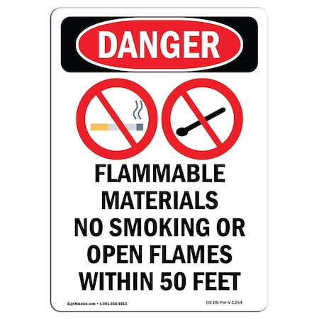 Safety Sign, OSHA Notice, 10" Height, Flammable No Smoking Or Open Flames Sign, Portrait