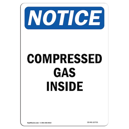 Safety Sign, OSHA Notice, 14" Height, Rigid Plastic, Compressed Gas Inside Sign, Portrait