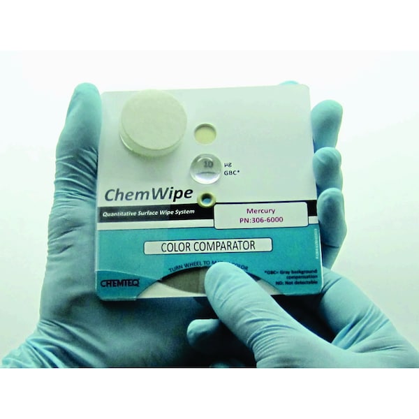 The ChemWipe Color Comparator PN: 306-6000 is a color comparator for the quantification of mercury & mercury II compounds collected on the mercury ChemWipe PN: 306.
