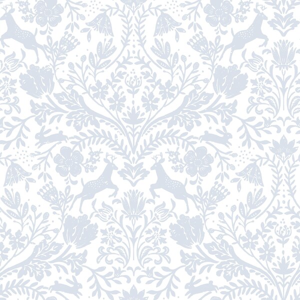 Forest Dance Light Blue Damask Wallpaper