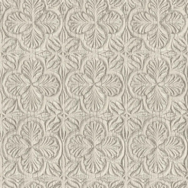Karachi Taupe Wooden Damask Wallpaper