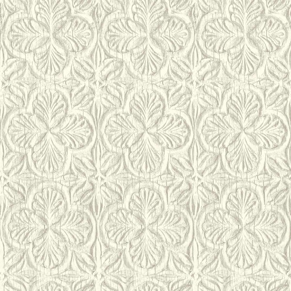 Karachi White Wooden Damask Wallpaper