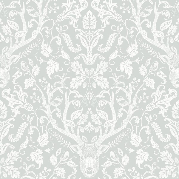 Kiwassa Grey Antler Damask Wallpaper