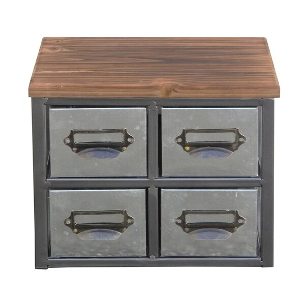 Short Galvanized 4 Drawer Vertical Organizer with Label Scoop Handle - Metal Frame & Wood Top (Discontinued)