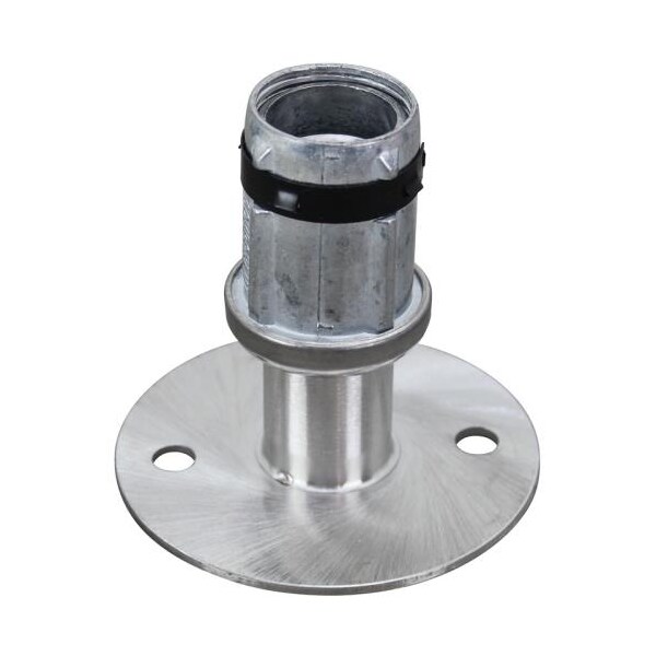 Foot insert; 1 1/2 in (H) x 3 1/2 in (Diameter) flange; Satin-finish stainless steel construction; 2 1/2 in hole centers; 1 1/8 in adjustment range; For 1 5/8 in (Outside Diameter) 16 ga round tubing; 2,000 lb load capacity