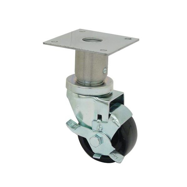 Swivel plate caster; 6 in to 6 1/2 in equipment height; 2 5/8 in hole centers; 250 lb. load capacity per caster; With brake; Can replace Pitco PP10809