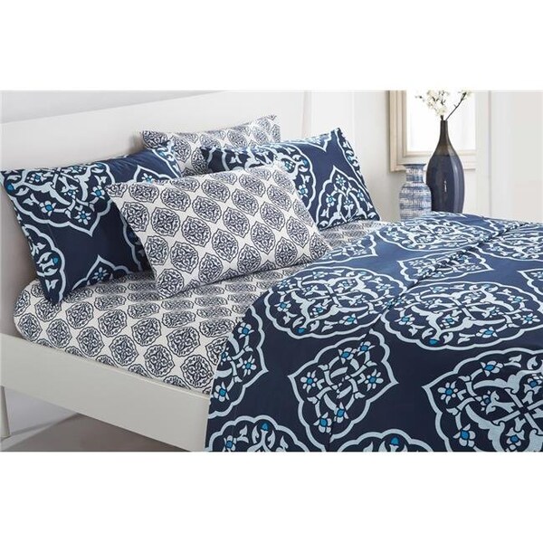 Chic Home SS3266-US Sami 6 Piece Sheet Set; Navy - Queen (Discontinued)