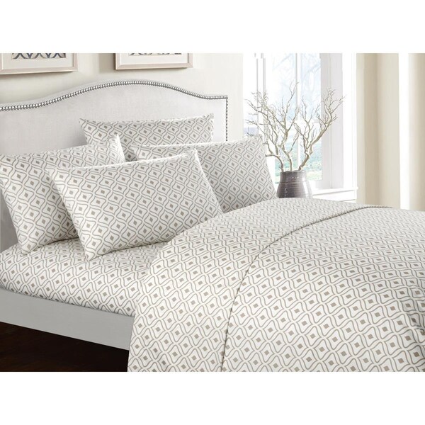 Twin Size Geometric Pattern Hinda Sheet SetBeige - 4 Piece (Discontinued)