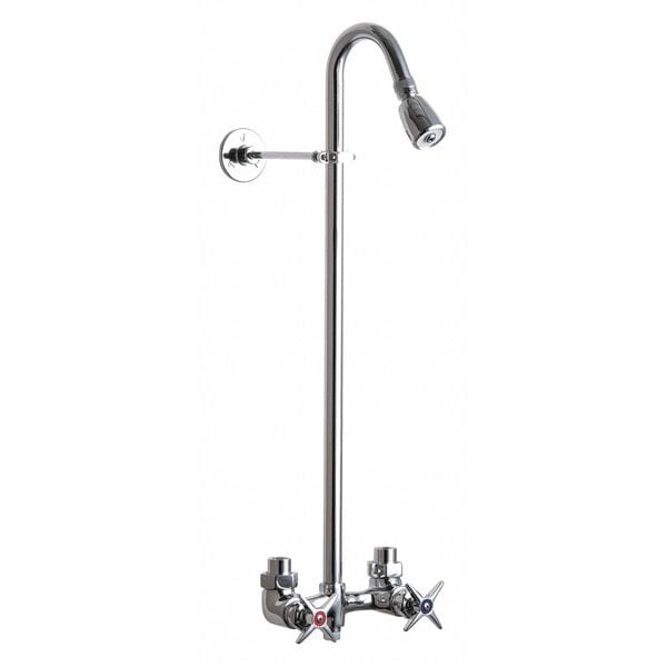 Two-Handle Service Fitting, Connection Size 1/2 in, NPT, Faucet Handle Type Cross, Fixed Showerhead Flow Rate 2.5 gpm, Fixed Showerhead Width 1 5/8 in, Handheld Showerhead Flow Rate Not Applicable, Handheld Showerhead Width Not Applicable, Handle Length 3 in, Number of Handles 2, Chicago Faucets, 752 Series, Shower Connection Type NPT, Showerhead Function Single, Showerhead Shape Bulb, Showerhead Spray Pattern Regular, Wall Mounted, Spout Reach 5 5/8 in, Trim Finish Chrome-Plated, Not Applicable