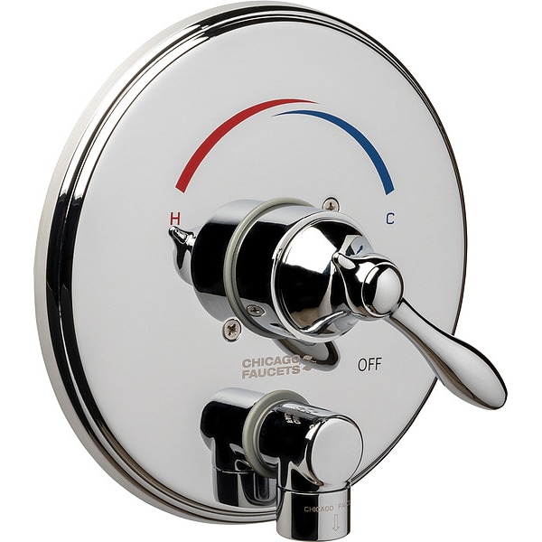 Tub and Shower Valve Trim, ADA Compliance Yes, Faucet Handle Type Lever, For Use With Thermostatic/Pressure Balancing Tub and Shower Fitting, For Use with Series SH Series, Number of Handles 1, Chicago Faucets, Not Applicable, Spout Reach Not Applicable, Trim Finish Polished Chrome, Trim Plate Depth 1/2 in, Trim Plate Height 8 in, Trim Plate Material Brass, Trim Plate Width 8 in, Not Applicable, Not Applicable
