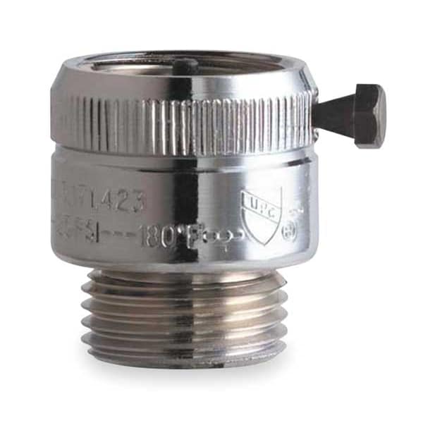 Vacuum Breaker Outlet, In-Line, Connection (In.) 3/4 FHT Inlet, 3/4 MHT Outlet, Material of Construction Brass, Chrome Plated Finish, For Use With Chicago Faucets