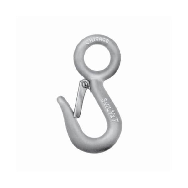 Chicago Hardware safety snap hook 750 lb, eyelet attachment, drop forged steel, Self-colored.