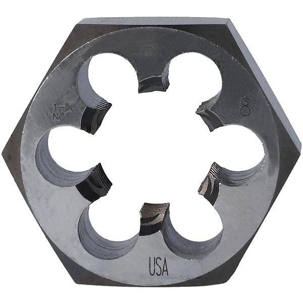 Hex Threading Die, Thread Size #4-48, UNF, Solid, Outside Dia. 5/8 in, Die Material Carbon Steel, Finish - Machining Bright, Thread Type UNC, Thread Pitch Not Applicable, Threads per Inch 48, Thread Direction Right Hand, Die Thickness 1/4 in, Die Shape Hex, Hex Size 5/8