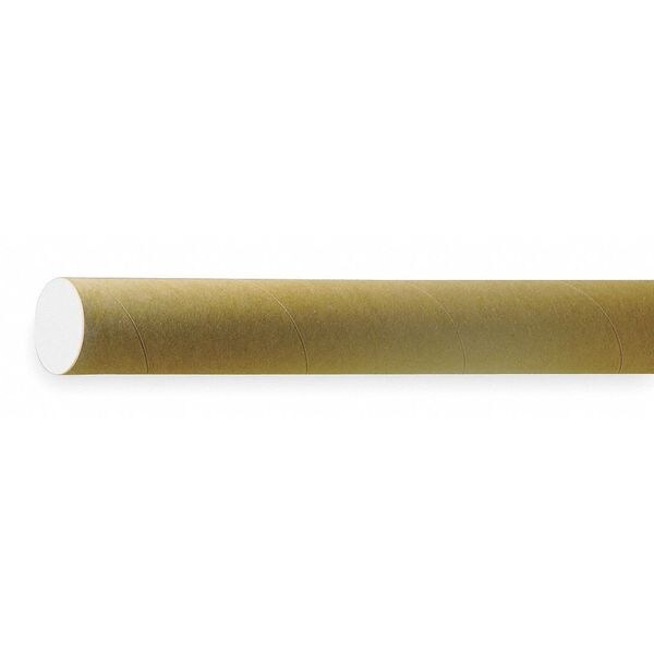 Mailing Tube, Shape Round, Color Kraft Brown, Material Spiral Wound Paper, Includes White Plastic End Caps, Standards USPS, UPS and DOT Shipping, Package Quantity 25