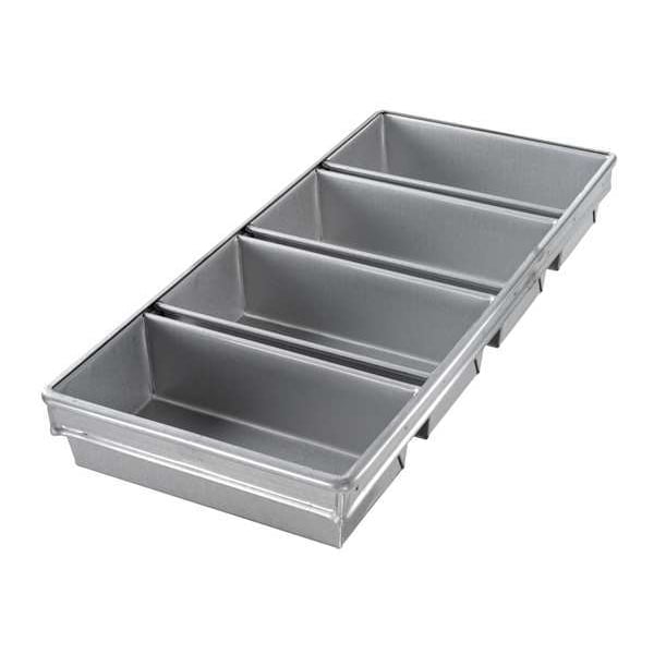 Bread Pan, Gauge 26 ga, Material Aluminized Steel, Dishwasher Safe No, Oven Safe Yes, Overall Length 23 7/8 in, Overall Width 10 3/4 in, Overall Depth 3 in, NSF Certified No, Number of Slots 4, Pan Style Open Top Bread Pan
