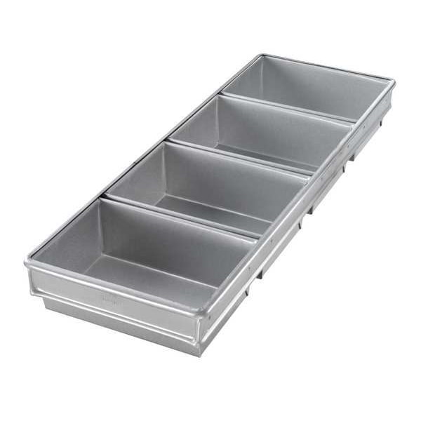 Bread Pan, Gauge 26 ga, Material Aluminized Steel, Dishwasher Safe No, Freezer Safe No, Oven Safe Yes, Color Silver, Overall Length 26 in, Overall Width 9 1/4 in, Overall Depth 3 in, NSF Certified No, Number of Slots 4, Pan Style Open Top Bread Pan
