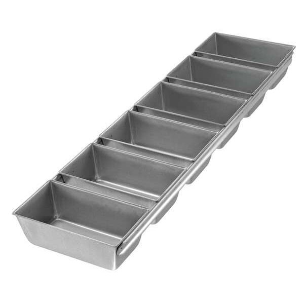 Bread Pan, Gauge 26 ga, Material Aluminized Steel, Dishwasher Safe No, Freezer Safe No, Oven Safe Yes, Color Silver, Overall Length 25 7/8 in, Overall Width 6 1/8 in, Overall Depth 2 1/4 in, NSF Certified No, Number of Slots 6, Pan Style Open Top Bread Pan