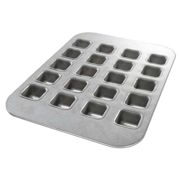 Brownie Bite Pan, Gauge 26 ga, Material Aluminized Steel, Dishwasher Safe No, Freezer Safe No, Oven Safe Yes, Capacity 1.8 oz, Color Silver, Overall Length 15 3/4 in, Overall Width 11 1/8 in, Overall Depth 1 1/4 in, NSF Certified No, Number of Slots 20, Pan Style Brownie Bite Pan
