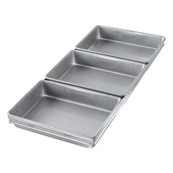 Cinnamon/Package Roll Pan Set, Gauge 26 ga, Material Aluminized Steel, Dishwasher Safe No, Freezer Safe No, Oven Safe Yes, Color Silver, Overall Length 22 1/8 in, Overall Width 9 7/8 in, Overall Depth 1 7/8 in, NSF Certified No, Number of Slots 3, Pan Style Cinnamon/Package Roll Pan