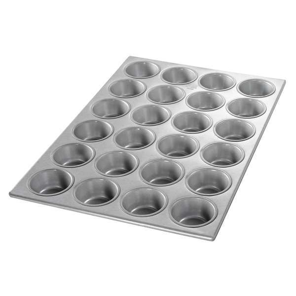 Cupcake/Muffin Pan, Gauge 26 ga, Material Aluminized Steel, Dishwasher Safe No, Freezer Safe No, Oven Safe Yes, Capacity 3.8 oz, Color Silver, Overall Length 20 3/4 in, Overall Width 14 1/8 in, Overall Depth 1 3/8 in, NSF Certified No, Number of Slots 24, Pan Style Cupcake Pan