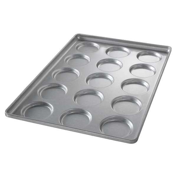 Hamburger Bun/MuffinTop/Cookie Pan, Gauge 22 ga, Material Aluminized Steel, Dishwasher Safe No, Oven Safe Yes, Overall Length 25 3/4 in, Overall Width 17 3/4 in, Overall Depth 1 1/2 in, NSF Certified No, Number of Slots 15, Pan Style Hamburger Bun Pan