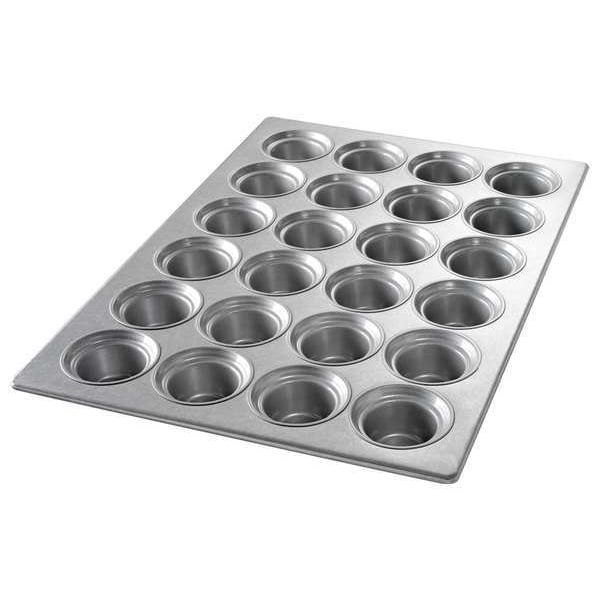 Large Crown Muffin Pan, Gauge 22 ga, Material Aluminized Steel, Dishwasher Safe No, Freezer Safe No, Oven Safe Yes, Capacity 7.3 oz, Color Silver, Overall Length 25 7/8 in, Overall Width 17 7/8 in, Overall Depth 1 3/8 in, NSF Certified No, Number of Slots 24, Pan Style Muffin Pan