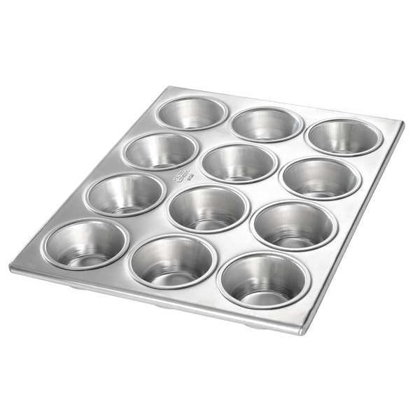 Muffin Pan, Gauge 20 ga, Material Aluminum, Dishwasher Safe No, Freezer Safe No, Oven Safe Yes, Capacity 3.8 oz, Color Silver, Overall Length 14 1/8 in, Overall Width 10 3/4 in, Overall Depth 1 3/8 in, NSF Certified No, Number of Slots 12, Pan Style Cupcake Pan