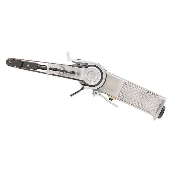 Air Belt Sander, Product Type Air-Powered Belt Sander, Belt Width 3/8 in, Belt Length 13 in, Arm Type Pivoting, Arm Rotation 90 Degrees , Speed Settings Fixed, Belt Speed 1,625 SFPM, Grip Type Straight, Horsepower 0.4 hp, Duty Medium, Air Consumption 22 cfm, Required Pressure 90 psi, Air Inlet Size 1/4 in, Air Inlet Type NPT, Minimum Hose Size 3/8 in, Throttle Type Lever, Vacuum Type Non-Vacuum, Tool Series CP858, Sound Level 104 dBA, Vibration Level 2.5 vpm, Tool Length 10 7/8 in