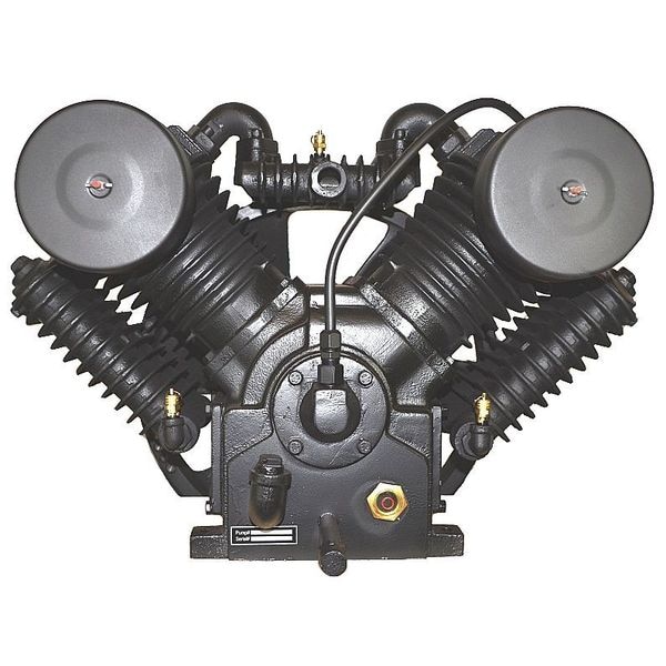 Air Compressor Pump, Lubrication Type Splash Lubricated, Number of Stages 2, Maximum Output Power 10 hp, Free Air Flow Rate @ Maximum Pressure 35.0 cfm @ 175 psi, Number of Cylinders 2, Maximum Operating Pressure 175 psi, Flywheel Diameter 19 in, Flywheel Included Yes, Pump Speed 900 RPM, Construction Cast Iron, Groove Section B, Number of Grooves 2, Valve Type Disc, Valve Material Stainless Steel, Rotation CCW, Stroke Length 3 1/2 in