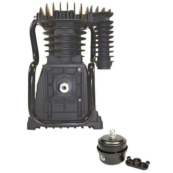 Air Compressor Pump, Lubrication Type Splash Lubricated, Number of Stages 2, Maximum Output Power 5 hp, Free Air Flow Rate @ Maximum Pressure 15.0 cfm @ 175 psi, Number of Cylinders 2, Maximum Operating Pressure 175 psi, Flywheel Diameter 13 3/4 in, Flywheel Included Yes, Pump Speed 1,400 RPM, Construction Aluminum, Groove Section A, Number of Grooves 1, Valve Type Reed, Valve Material Stainless Steel, Rotation CCW, Stroke Length 2 in