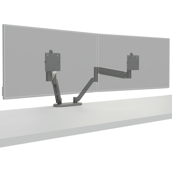 Koncis Dual Display Monitor Arm - For Displays 10-32" - Silver, Rotation Stop, 2-piece Desk Clamp