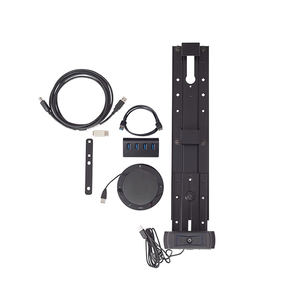 Fusion mount accessory with integrated HD camera, 10' (305 cm) USB cable, USB speakerphone, Powered USB hub, USB A/B gender adapter (Only on non-extender versions), Local USB to CAT5 extender with power supply (only on extender versions)