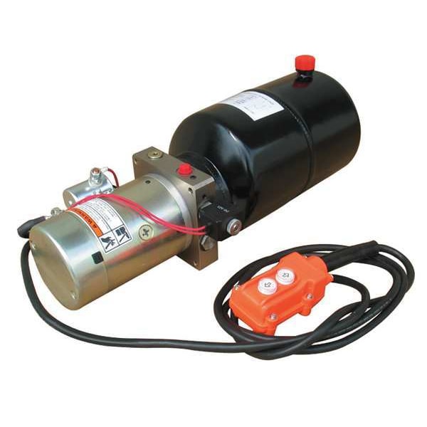 Hydraulic Power Unit, Circuit Design Single Acting, Power Source - Power Units DC Power, 2 hp HP, RPM 2,600 RPM, 12V DC, Full Load Amps 300 A, Pump Stage 1, Max. Pressure 2,500 psi, Nominal Flow 1.3 gpm, Reservoir Capacity 1.5 gal, Overall Length 22 1/4 in, Overall Width 10 in, Overall Height 8 3/4 in