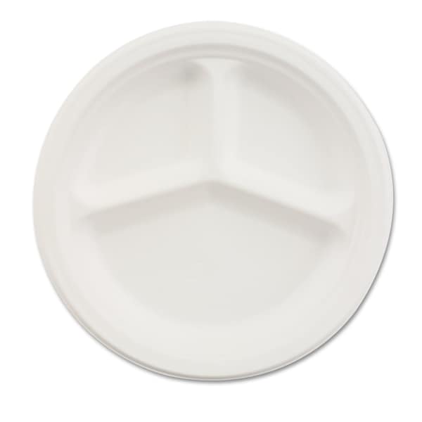 Chinet® Paper Dinnerware, 3-Comp Plate, 9 1/4" dia, White, 500/Carton
