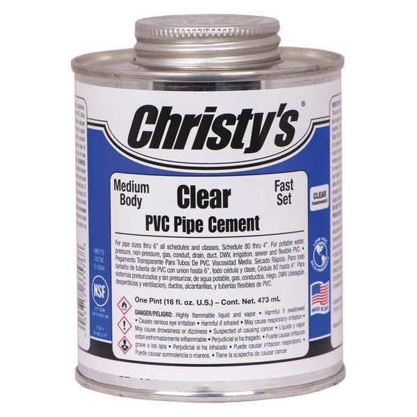 Pipe Cement, For Material Type PVC, Series PVC Cement, Container Size 16 fl oz, Container Type Can, For Maximum Pipe Diameter 6 in, Color Clear, Standards ASTM D-2564, NSF/ANSI 14, NSF/ANSI 61