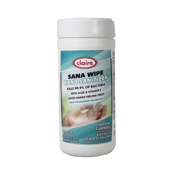 Disinfectants Wipes. Hand Sanitizer Wipes rely on a powerful formula to eliminate several disease causing germs and bacteria from skin including: Pseudomonas Cepacia, Staphylococcus Aureus, Salmonella Choleraesuis and Escherichia Coli. Within seconds, this effective sanitizing formula kills 99.9% of germs and bacteria on skin. Sanitizes & Conditions Skin. Fresh Wintergreen Fragrance. Wipes Size 6'' x 8''. Wipe Count 70 wipes per tub. Units/Pack 1 tub.