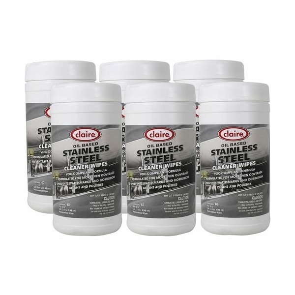 Claire Manufacturing Co Wipes,f/Stainless Steel,CitrusScent,9-1/2''x12'',40/Tub,6/CT WIPE, STAINLESS STEEL